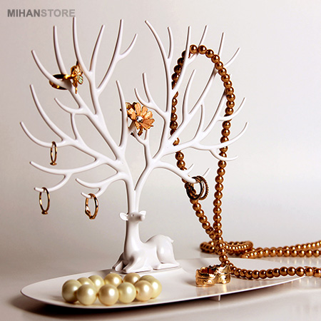 آویز زیور آلات طرح گوزن یک وسیله بسیار کاربردی برای آویز کردن جواهرات یا دیگر لوازم است که علاوه بر کاربردش به عنوان وسایل دکوراتیو منزل نیز می توانید از آن استفاده نمایید. شاخ های طراحی شده برای این گوزن به شکل درخت و زیاد هستند تا بتوانید با خیال راحت تمامی جواهرات خود را یا به شاخه ها آویزان کنید و یا درون سینی پایه آن قرار دهید. جنس این محصول از پلاستیک درجه یک و با کیفیت می باشد بنابراین نگرانی بابت افتادن یا شکستن آن نخواهید داشت. آویز جواهرات گوزن تنها برای خانم ها نبوده و آقایان نیز می توانند برای نگهداری ساعت، انگشتر، کیف پول، کلید و ... از این محصول استفاده نمایند.