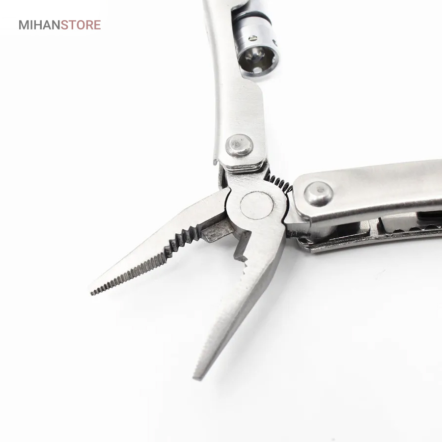 زمانی که قصد سفر ، شکار ، کوهنوردی یا کمپینگ و …… را دارید یک وسیله ی کاربردی که هم انبردست باشد و هم چراغ قوه و در عین حال توانایی انجام چندین کار مختلف را داشته باشد بسیار به کارتان خواهد آمد. انبردست تاشو چراغدار جیبی یک وسیله ی کاربردی چندین کاره میباشد که تنها ۷۰ میلی متر طول و ۱۳ میلی متر عرض دارد و بسیار بسیار کم حجم و سبک میباشدانبردست جیبی چراغدار چندین کاره دارای ابزارهای چراغ قوه ، چاقو ، اره ، پیچ گوشتی چهارسو ، پیچ گوشتی دوسو و دربازکن میباشدجنس این انبردست تماما از الیاژ فلزی ضد زنگ میباشد و بسیار مقاوم و بادوام ساخته شده استاین انبر دارای ۱ چراغ LED نور سفید میباشد که با ۳ عدد باتری ساعتی کار کرده و به روش پیچی روش و خاموش میشودانبردست جیبی چراغدار چندین کاره مناسب برای شکار ، ماهیگیری ، سفر ، کوهنوردی و کمپینگ ، همچنین از این محصول میتوان به عنوان یک ابزار کاربردی مهم و مفید برای داخل خودرو نیز استفاده کرد.