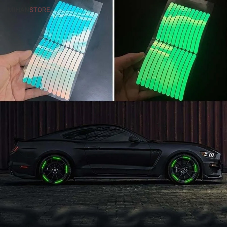 محصولی است که با طراحی منحصر به فرد خود، زیبایی و جذابیت خاصی به خودروهای شما میبخشد. به شکل برچسب چسبانده شده، به سادگی بر روی رینگهای چرخ نصب میشوند و در شب جلوهای خیرهکننده ایجاد میکنند. این محصول دارای 20 عدد برچسب نواری هست که برای 4 عدد لاستیک اتومبیل، پاسخگو هست.