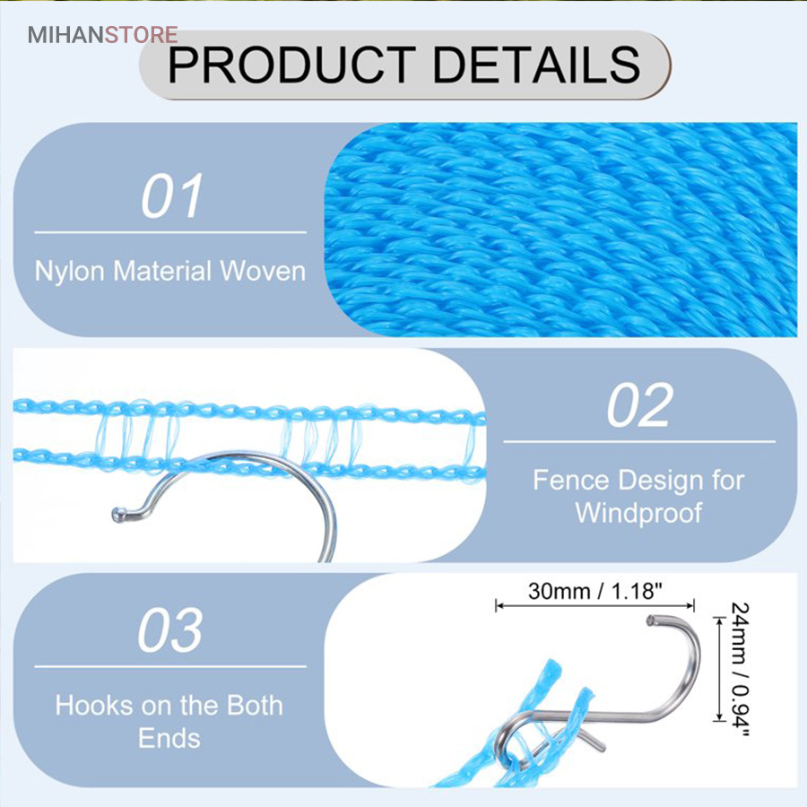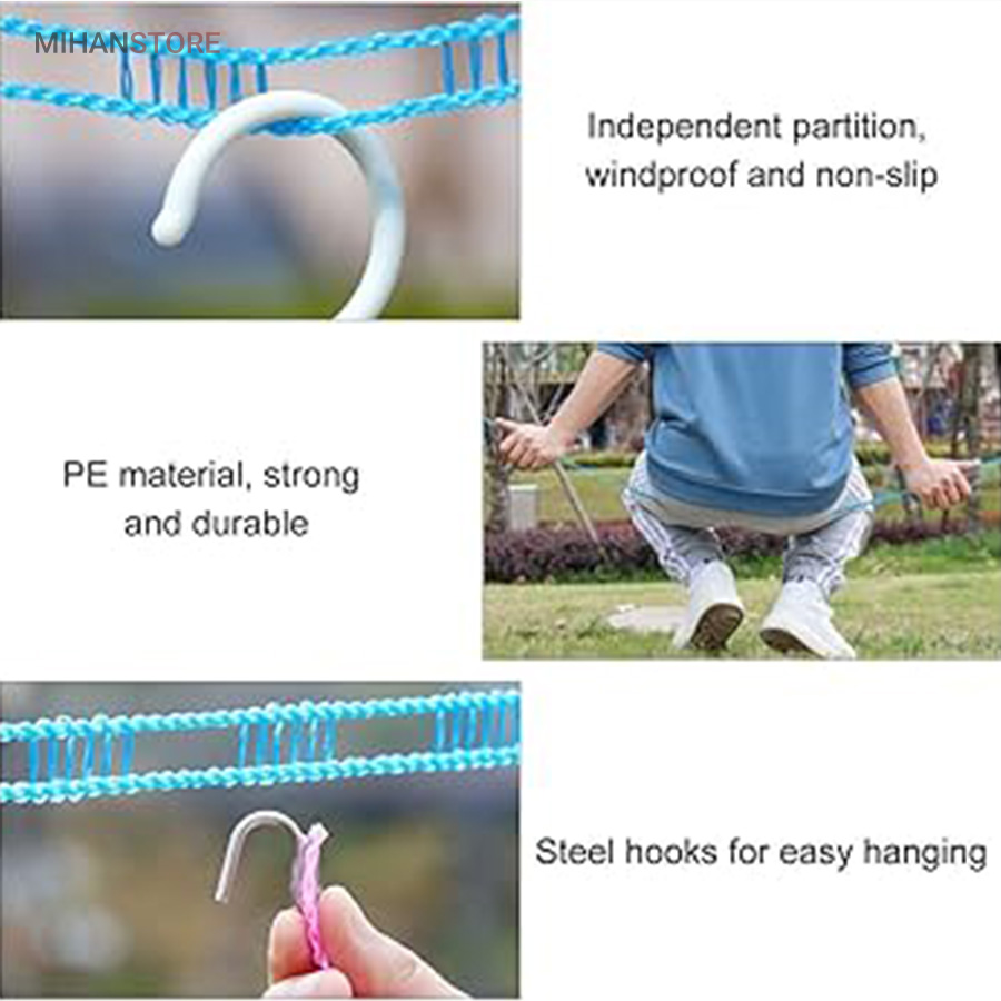 بند رخت بسیار بادوام در فضای باز، محکم و بادوام، طراحی نرده مانند منحصر به فرد باعث می شود لباس های شما سر نخورده و در یک جا جمع نشود، می توانید به راحتی انواع لباس ملحفه و اجسام سنگین را آویزان کنید.این محصول دارای دو قلاب استیل ضد زنگ به راحتی قابل نصب است و می توانید طول آن را بر اساس نیاز خود تنظیم کنید.گیره از فولاد ضد زنگ ساخته شده است که نسبت به رخت آویز سنتی بادوام تر، عمر طولانی تر، انعطاف پذیری بالا و ویژگی منحصر به فرد این محصول بعد از استفاده میتوانید جمع کنید که بعد از جمع شدن فضای حدودی 4 سانتی متر را اشغال میکند.