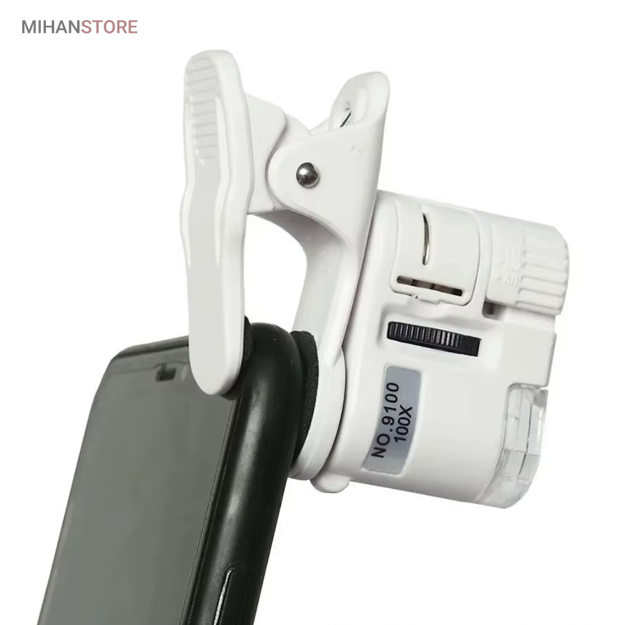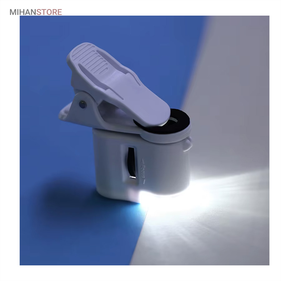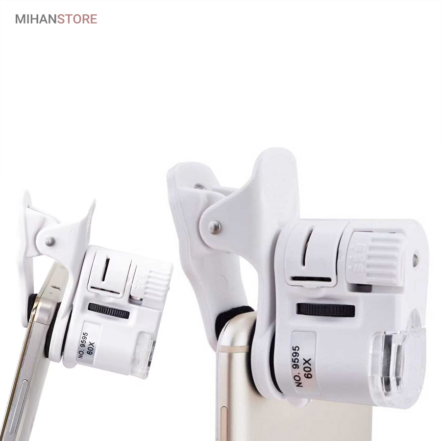 میکروسکوپ موبایل 60x یونیورسال مدل 9595 ذره بینی کوچک و قابل حمل در جیب با زوم 60 برابر و مدل کلیپسی گیره دار مناسب اتصال به گوشی موبایل میباشد.موبایل های هوشمند امروزی از بسیاری از کامپیوتر های چند سال قبل هم سریع تر و هم قوی تر شده اند از این رو هر روزه گجت های متنوع و کاربردی فراوانی مخصوص موبایل طراحی شده و معرفی می شوند.این میکروسکوپ موبایل با بزرگنمایی 60 برابر در واقع یک لنز مخصوص موبایل است که به همراه کلیپس خود می تواند بروی دوربین انواع موبایل نصب شده و دوربین موبایل رو به یک میکروسکوپ تبدیل کند. پس اگر به دنبال میکروسکوپ قابل حمل هستید، این گجت گزینه مناسبی می باشد.این میکروسکوپ موبایل با قدرت بزرگنمایی 60 برابری، دارای قیمت ارزان و کیفیت قابل قبولی می باشد و دارای توان مصرفی پایینی است که امکان نصب بر روی انواع تلفن همراه و تبلت ها قابل نصب می باشد.از آنجائیکه منبع نور این دستگاه درست در امتداد لنز اصلی آن قرار داشته و نور از بالا بروی نمونه تابیده می شود از این رو برای رویت سطح هر جسمی میتوان از آن استفاده نمود مانند سطح کاغذ، سطح برگ، مشاهده مدارهای الکترونیکی (مدار چاپی)، مشاهده جواهرات و سنگ های قیمتی، مشاهده امور مختلف زمین شناسی ، استفاده برای صنعت چاپ و دهها صنعت دیگر.دارای دو عدد چراغ LED می باشد که یکی از آنها سفید و برای روشن کردن زمینه بوده و چراغ دوم نور آبی UV جهت تست اسکناس می باشد.قسمت بالائی این ذره بین همانند تلسکوپ یا دوربین تک چشمی بصورت طولی بزرگ و یا کوچکتر می شود؛ و امکان زوم را میدهد.کلید این ذره بین دو حالته می باشد و با باطری کوچک ساعت کار می کند و بسیار کم مصرف است.فاصله ای که از جسم مورد نظر باید گرفت تا واضح دیده شود مماس تا 1 سانتی متر میباشد.