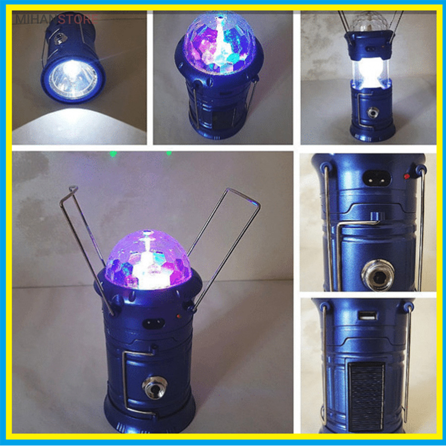 چراغ کمپینگ شارژی رقص نور دار با قابلیت جمع شدن و دو مدل نور دهی که علاوه بر روشن شدن محیط امکان پرتاب نور به نقاط دور تر را فراهم میکند .بر روی این فانوس لامپ های رنگی وجود دارد که با حالت چرخشی رقص نور جذابی را ایجاد میکند .مناسب برای زمان تاریکی و برای مهمانی های خانوادگی تا از رقص نور آن استفاده کنید .