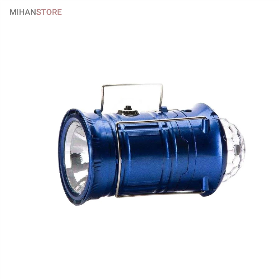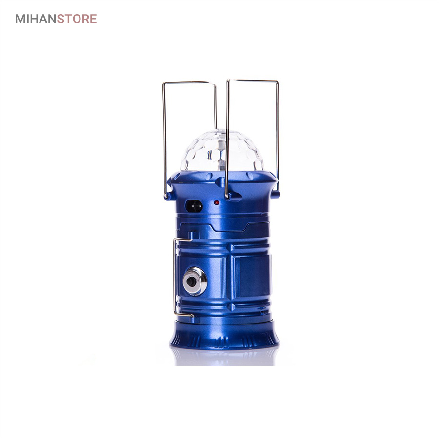 چراغ کمپینگ شارژی رقص نور دار قابل حمل به همراه رقص نور، محصولی با طراحی نوین و بسیار کاربردی است . این چراغ را میتوان تلفیقی از فانوس های قدیمی و چراغ قوه های جدید و رقص نور مدرن دانست .چراغ کمپینگ شارژی رقص نور دار، در واقع یک ابزار چند کاره است و میتواند به سادگی نیاز های شما در رابطه با نور را در مسافرت، پیک نیک و جشن های خانواگی و مواردی نظیر آن فراهم کند . شما میتوانید با کشیدن سر چراغ به سمت بالا (کشویی)، فانوس را روشن کنید و از آن برای تأمین نور محیط استفاده نمایید. چراغ اصلی فانوس دارای 6 چراغ ال ای دی است که در کنار هم نور قوه ای را ایجاد میکنید. همچنین در بالای این فانوس یک شیشه منشوری وجود دارد که هنگام روشن کردن با چرخش و نور پردازی فضای دل انگیزی را برای شما به وجود میآورد. این محصول خرید خوبی برای استفاده در کمپینگ و طبیعتگردی خواهد بود.ورودی برق روی دستگاه بوسیله سیم همراه به برق وصل شده و چراغ را شارژ مینماید تا بتوانید به صورت بی سیم از چراغ استفاده نمایید.خروجی یو اس بی روی دستگاه نیز برای شارژ تلفن همراه شما تعبیه شده است و برای شارژ کردن گوشی موبایلتان است.جنس بدنهی این محصول سبک و کم حجم، جنس بدنه از ABS + PC، محکم و بادوام است که بهسادگی آسیب نمیبیند و این امکان را به شما میدهد تا مدتزمان زیادی بهصورت مستمر از آن استفاده کنید. این محصول وزن قابلقبولی دارد و شما میتوانید بهراحتی آن را حمل کنید و در سفرها به همراه داشته باشید.