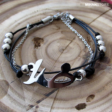 دستبند چرم و استیل طرح خدا
